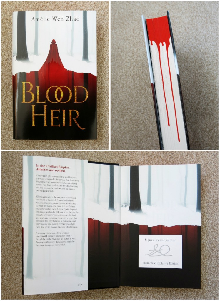 And finally – the book! This month’s pick is Blood Heir by Amélie Wen Zhao. It has exclusive stencilled edges, exclusive endpapers and is signed by the author. Sprayed edges are great, but I love the creativity of stencilled edges. The endpapers are gorgeous too and fit perfectly with the cover.