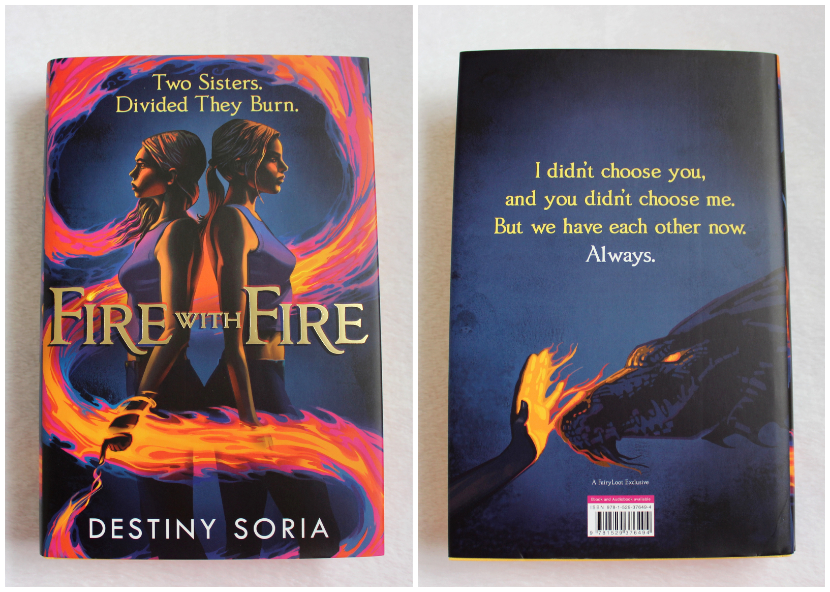 The June book was Fire with Fire by Destiny Soria! It has an exclusive cover, sprayed edges, artwork on the reverse of the dust jacket and foil embossing on the case by @icandrawthingz and is signed.